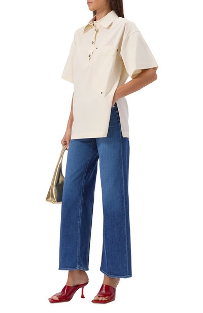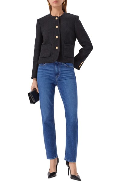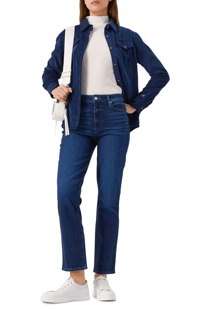 Зауженные джинсы Gemma с высокой посадкой и пятью карманами украсили брендированным жакроном на поясе сзади. Модель выполнили из фирменного денима Transcend Vintage.