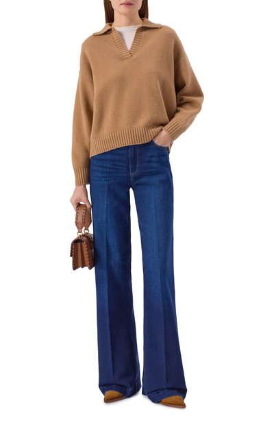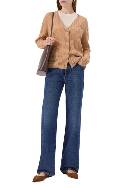 Джинсы Sasha с пятью карманами выполнили из хлопкового денима стрейч. Пояс модели со стрелками дополнили брендированным патчем сзади.