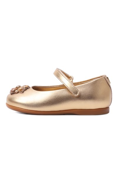 Балетки из коллекции Holiday органично дополнят торжественный образ. Для создания пары на тонкой подошве выбрали металлизированную кожу ягненка. Мыс украсили цветком из кристаллов, а подъем подчеркнули ремешком с пряжкой в виде монограммы DG.