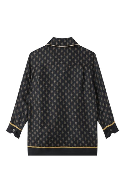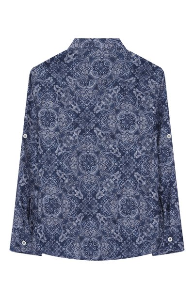 Рубашку с двумя защипами на спинке выполнили из шелкового твила. Нагрудный карман с брендированной нашивкой, пуговичную планку и воротник подчеркнули контрастным кантом.