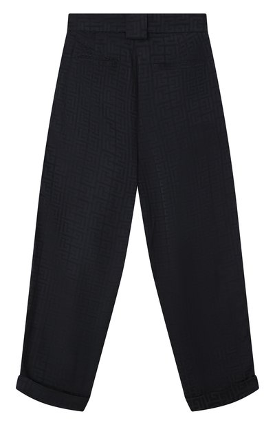 Для изготовления брюк с эластичным поясом-кулиской использовали шелковый твил. Задний карман украсили брендированной нашивкой и контрастным кантом, которому вторит кайма по бокам.