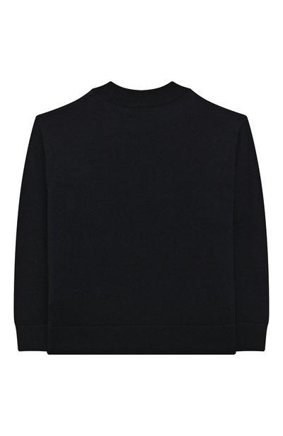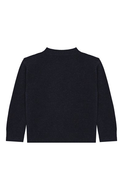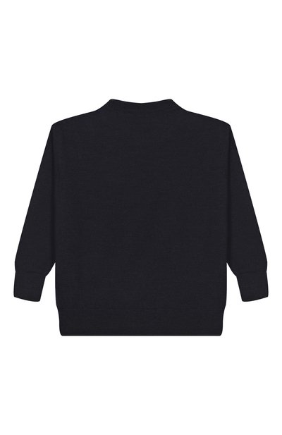 Пуловер выполнили чулочной вязкой из шерсти первого пострига. Спереди модель из коллекции Holiday декорировали геральдической нашивкой.