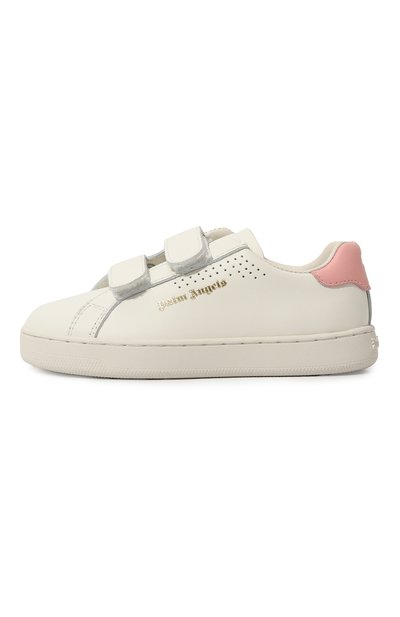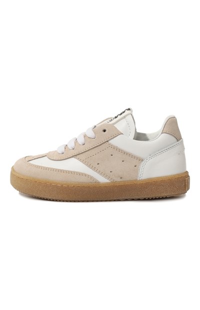 Кеды на тонкой резиновой подошве и с мысом анатомической формы выполнили из кожи и замши. Широкий ремешок велкро украсили фирменным числовым кодом, а задник – знаковой белой строчкой.