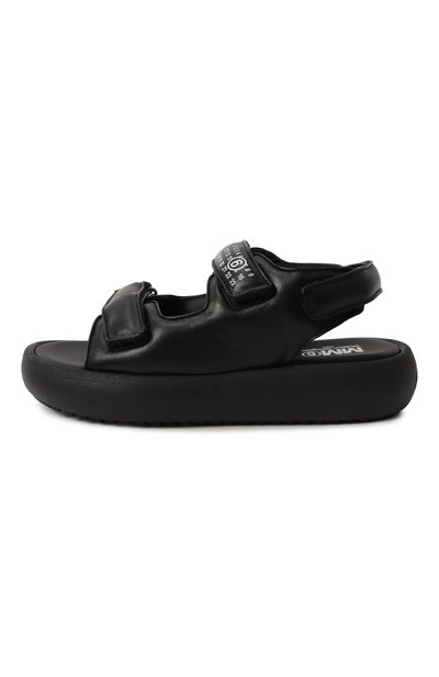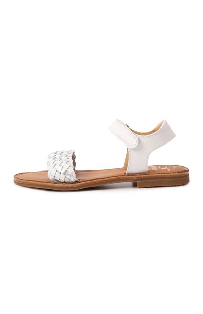 Сандалии с внутренней отделкой из кожи выполнили из вискозного атласа с добавлением шелка. Модель с цветами из кристаллов на стеганой перемычке застегивается ремешком велкро сзади.