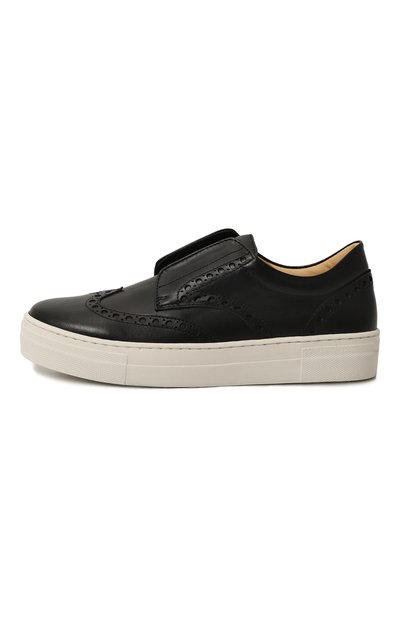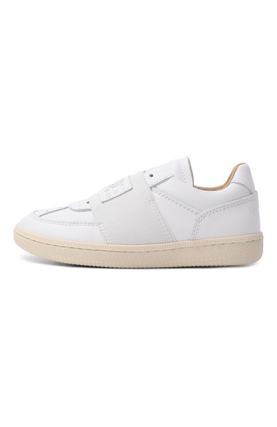 Слипоны с перфорацией на союзке выполнили из кожи. Задник украсили фирменной строчкой, а широкую эластичную ленту, заменившую шнуровку, – патчем с фирменным числовым кодом.