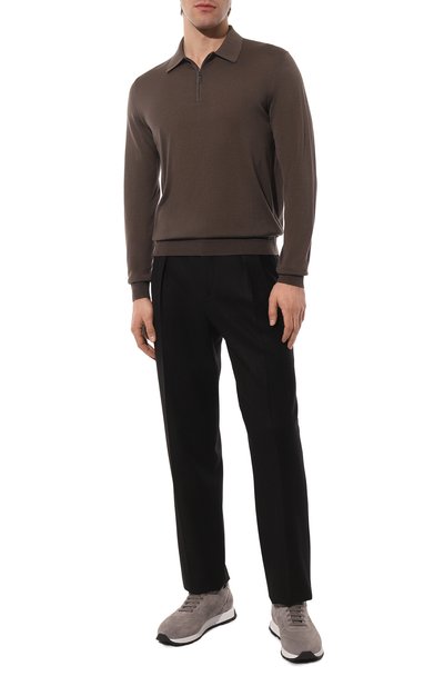 Поло с отделкой в рубчик связали из шерстяной пряжи. Модель застегивается короткой молнией Ingot с брендированным пуллером.