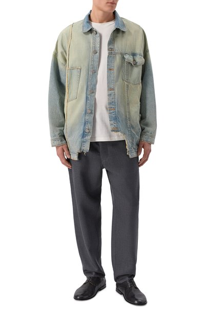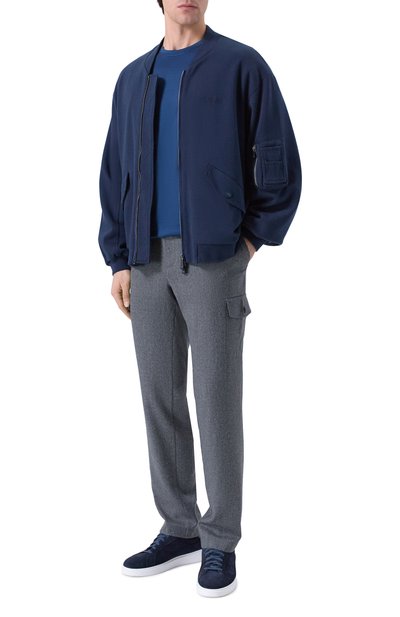 Брюки со стрелками дополнили двумя парами карманов. Для изготовления модели использовали фланель из микса шерсти и кашемира.