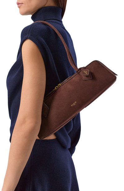 Перфорированную сумку Berenices East West из кожи дополнили двумя длинными ручками. Аксессуар с магнитными клапанами по бокам и внутренним плоским карманом застегивается фирменной Т-образной пряжкой.