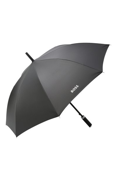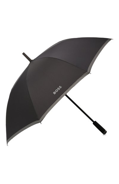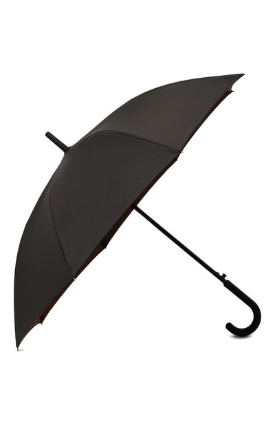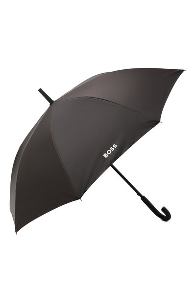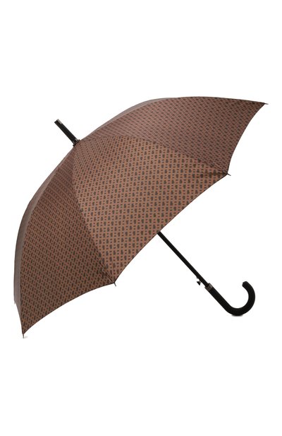 З онт-трость с брендированной прорезиненной ручкой выполнили из матового полиэстера в клетку. Купол украсили логотипом марки. Аксессуар с автоматическим механизмом открытия дополнили чехлом на молнии.