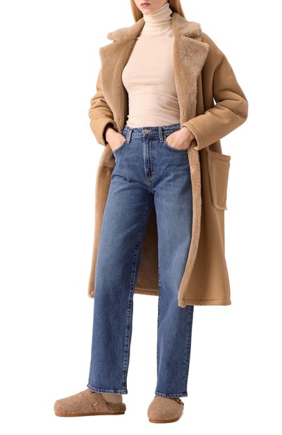 Джинсы Arc свободного кроя сшили из регенерированного хлопкового денима с декоративными заломами и потертостями. Модель со средней посадкой дополнили пятью карманами.