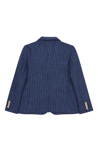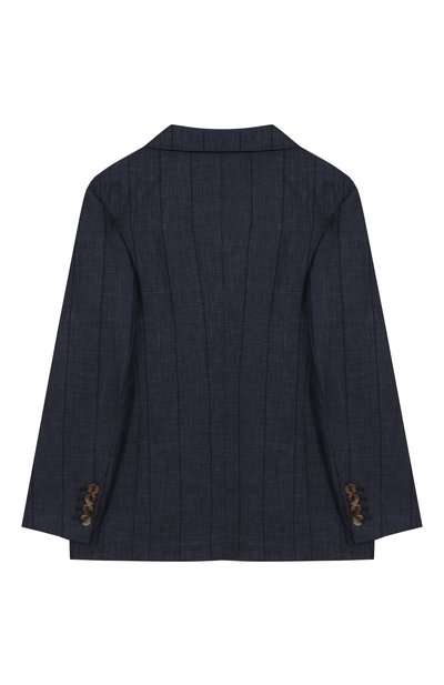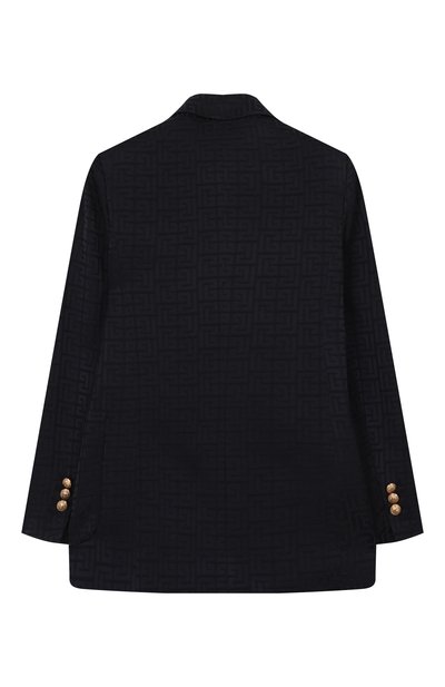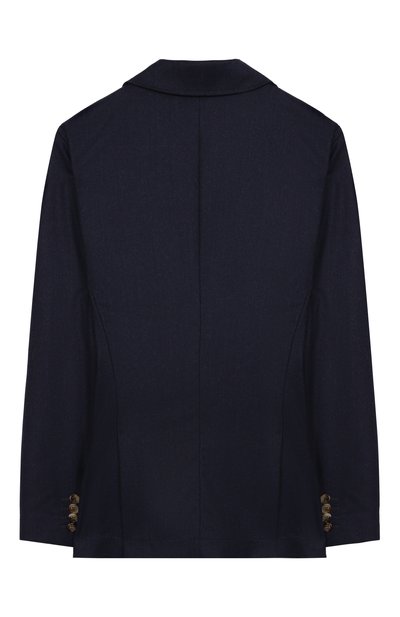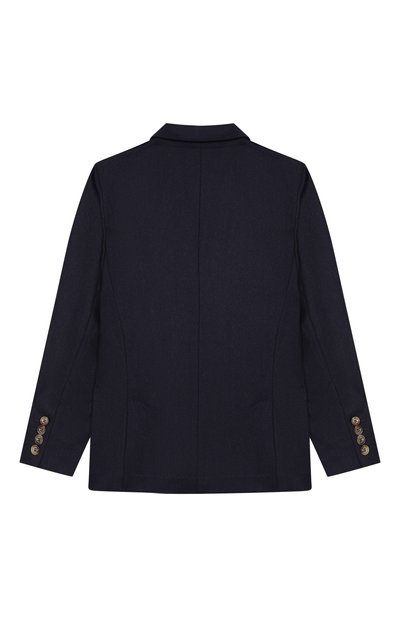 Однобортный пиджак с отделкой из шелкового атласа и тремя карманами выполнили из стрейчевой ткани sallia на основе шерсти первого пострига. Спереди модель из коллекции Holiday, представленную эксклюзивно в ЦУМе, декорировали брендированной геральдической вышивкой.
