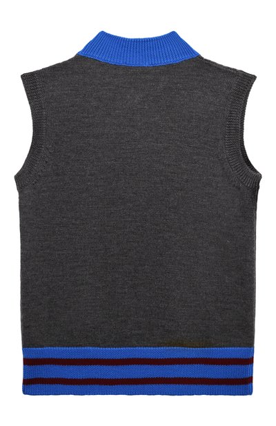 Однобортный жилет с атласной отделкой, представленный эксклюзивно в ЦУМе, выполнили из полувискозного жаккарда с добавлением металлизированных нитей. Модель с шалевым воротником, регулируемым ремешком на спинке и обтяжными пуговицами дополнили врезными нагрудным и боковыми карманами.