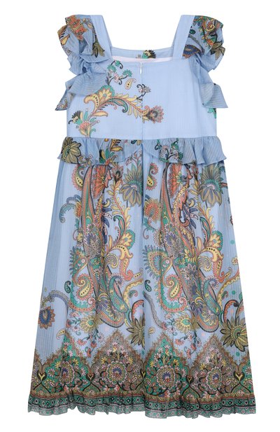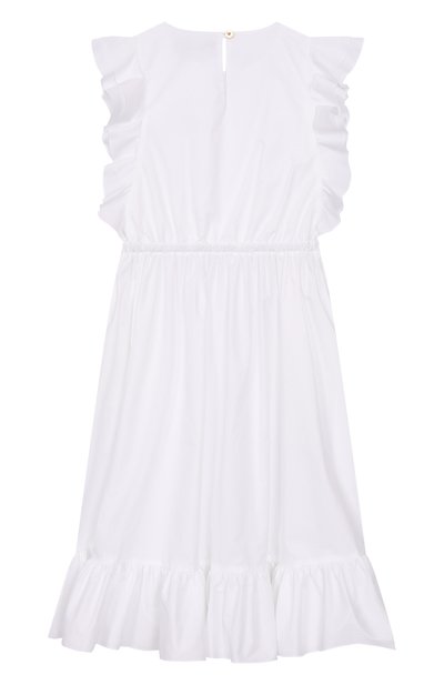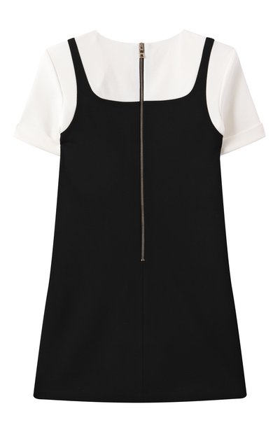 Платье А-силуэта, представленное эксклюзивно в ЦУМе, выполнили из фактурного жаккарда на основе вискозы с добавлением металлизированных нитей. Спереди модель с потайной молнией на спинке декорировали монограммой DG со стразами.