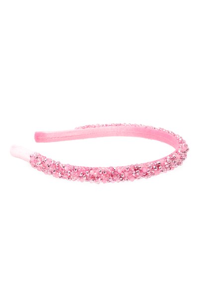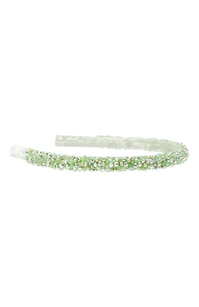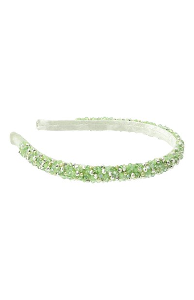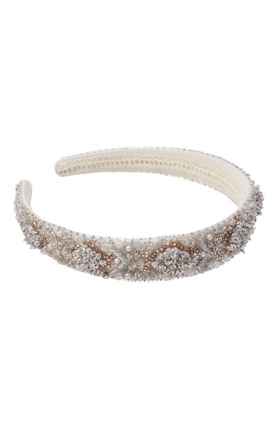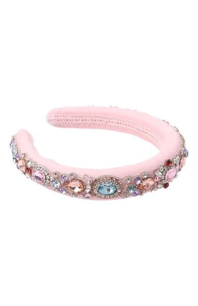 Металлический каркас ободка обтянули вискозным жаккардом. Модель декорировали аппликацией со стразами и длинными перьями.