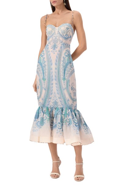 | Состав Лен: 100%; Подкладка-лен: 100%; Подкладка 2-хлопок: 100%; Юбка-лен: 55%; Юбка-шелк: 45%; Подкладка 3-вискоза: 100%; |