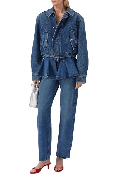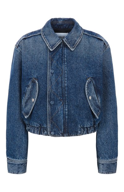Укороченную куртку с петлей сзади выполнили из хлопкового денима. Спереди модель с двумя нагрудными клапанами украсили мотивом в технике trompe l'oeil.