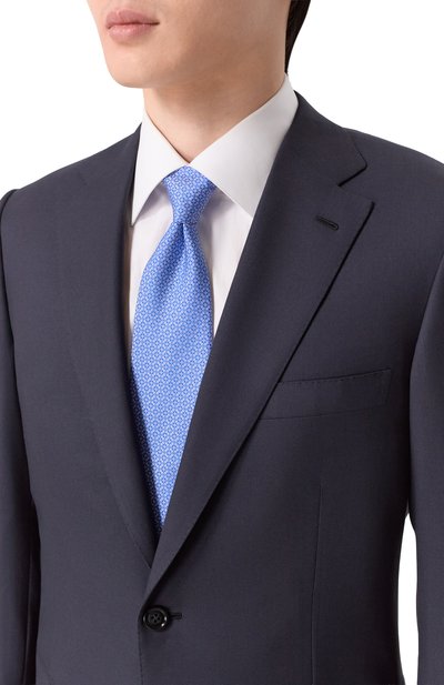 Для изготовления галстука в диагональную жаккардовую полоску использовали ткань из шелка малберри. Аксессуар дополнили тонким подкладом, поэтому он хорошо держит узел.
