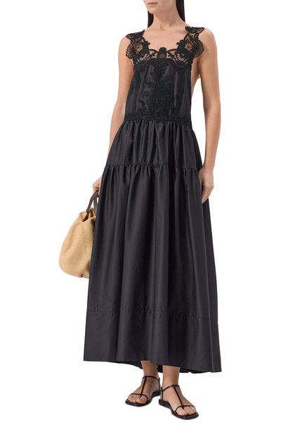 Платье на бретелях. Обхват груди 90 см, обхват талии 93 см, обхват бёдер 120 см, длина изделия по спинке 138 см.