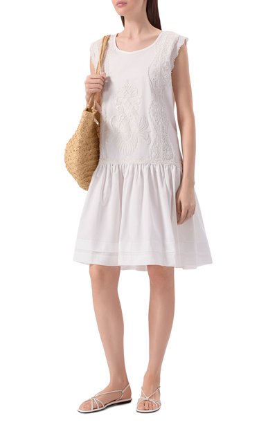 Платье без рукавов. Обхват груди 94 см, обхват талии 88 см, обхват бёдер 120 см, длина изделия по спинке 121 см, минимальная длина изделия 106 см.