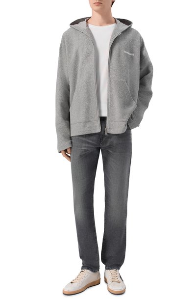Джинсы 2024 D-Macs с декоративными потертостями выполнили из хлопкового денима. Пояс модели дополнили брендированным патчем, самый маленький из пяти карманов украсили фирменной лентой, а задний – вышитой литерой D.