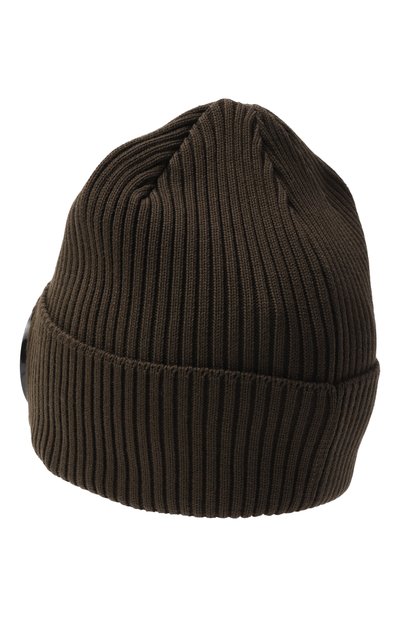 Шапку бини связали резинкой из тонкой хлопковой пряжи. Широкий отворот аксессуара дополнили фирменными линзами Goggle.