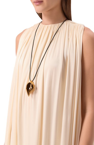 Кулон в виде антуриума выполнили из латуни с покрытием эмалью. Початок подчеркнули миниатюрными стразами. Модель дополнили тонким шнуром, длину которого можно регулировать цепочкой и застежкой «лобстер».