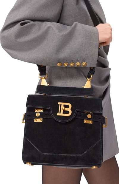 Сумку B-Buzz из замши дополнили характерными боковыми ремешками и акцентным поворотным замком B-Twist. Помимо кожаного кармана на задней панели предусмотрели внутренний на молнии и карточный слот. В комплекте – съемный плечевой ремень.