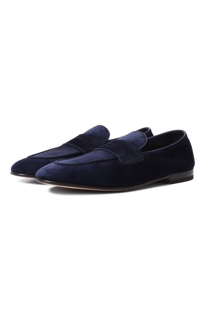 Пенни-лоферы с рельефным швом вдоль мыса выполнили из мягкой замши. Пару установили на тонкую кожаную подошву с наборным каблуком и рифлеными резиновыми накладками.