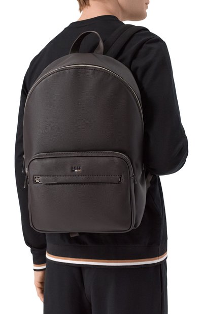 Рюкзак с с етчатой спинкой, одним карманом снаружи и парой внутри выполнили из текстиля. Модель на широких лямках украсили итальянским триколором и логотипом марки.
