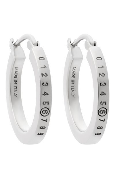 Серьги в форме диска выполнили из отполированного до зеркального блеска серебристого металла. На контуре пусетов, украшенных фирменным числовым кодом сзади, разместили кристалл.
