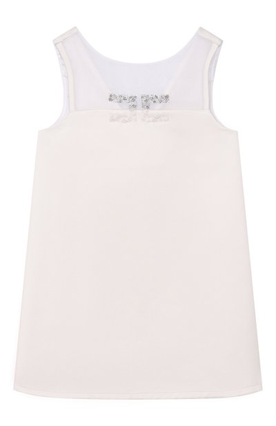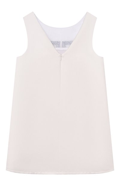 Двухцветное платье из полиэстера застегивается потайной молнией сзади. Спереди модель на вискозном подкладе украсили кристальным логотипом.