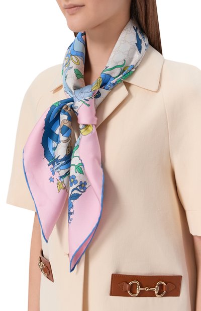 Квадратный платок из шелкового твила вошел в капсульную коллекцию Year of the Horse. Модель украсили контрастным принтом с изображением лошадей, разработанным пекинской художницей Лю Вэньтин. Сбоку – фирменная эмблема Mother and Daughter.