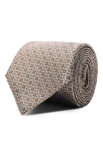 Галстук с жаккардовым орнаментом изготовили из чистого шелка. Чтобы аксессуар с петлей-держателем на изнаночной стороне лучше держал форму, его дополнили подкладом.