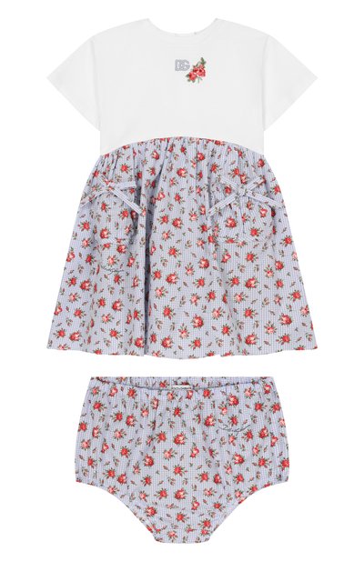 Сарафан на узких бретелях, украшенных бантиками, выполнили из чистого хлопка в фирменную клетку. Вырез модели и эластичный пояс входящих в комплект шорт подчеркнули оборками.