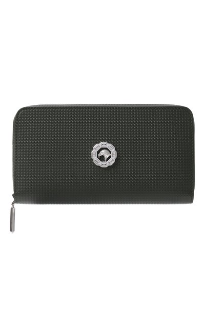 Портмоне на молнии с брендированным пуллером выполнили из телячьей кожи с узором в виде миниатюрных фирменных октагонов. Аксессуар декорировали контрастной металлической эмблемой Royal Eagle. Внутри предусмотрели четыре отсека для купюр, разделительный монетный карман и карточные слоты.