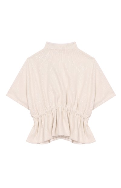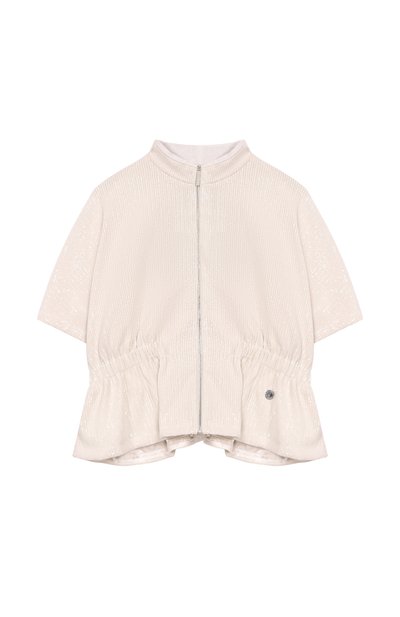 Жакет на вискозном подкладе выполнили из расшитого пайетками полиэстера стрейч. Модель с фирменной фурнитурой под эластичной вставкой на талии застегивается молнией.