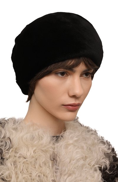 Лаконичный черный цвет берета дизайнеры марки компенсировали, выбрав для его изготовления плотный мех норки с шелковистым блеском. Особая структура остевых волосков сделала аксессуар легким. Очищенное от любого декора изделие подружится как с шубой, так и с пальто.