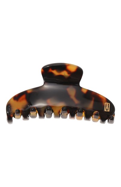 Черепаховый рисунок на этой заколке-крабе Vendome полностью раскрывается в ярком свете. Лучи пронизывают желтый узор насквозь, придавая ему сходство с языками пламени, а контр астные участки остаются темными, словно остывшие угли. Чтобы добиться такого эффекта, мастера марки выполнили аксессуар из двух видов ацетата разной степени прозрачности.