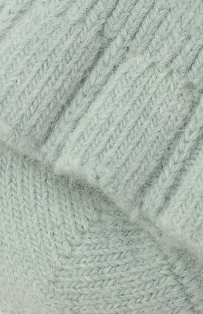 В носках светло-розового оттенка будет комфортно на длительных прогулках в холодную погоду. Их связали фактурным узором из нежной, приятной на ощупь ангоры. Хорошо удерживающий тепло и пропускающий воздух материал настолько легкий, что аксессуар практически не ощущается на ногах. Чтобы изделие не деформировалось после стирок, в состав пряжи добавили волокна эластана.