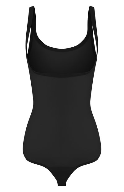 Мастера марки использовали для создания черного боди ультратонкую полупрозрачную ткань. Эластичное изделие позволяет формировать привлекательный силуэт, не доставляя дискомфорта. Модель оставляет тело максимально открытым: сверху — глубокий круглый вырез, снизу — крой на манер стрингов.