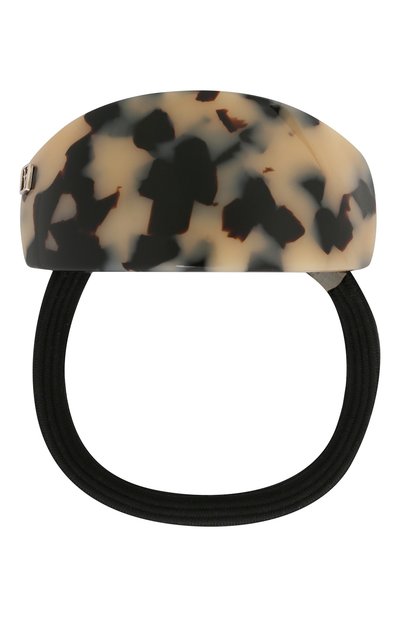 Резинку для волос выполнили из эластичного плетеного шнура, который не деформируется со временем и не травмирует волосы. Аксессуар декорировали выгнутой пластиной из глянцевого биоацетата с черно-бежевым узором, напоминающим мрамор. Материал получили из древесины сертифицированных лесов и связующего состава на основе растительного крахмала и биоэтанола.