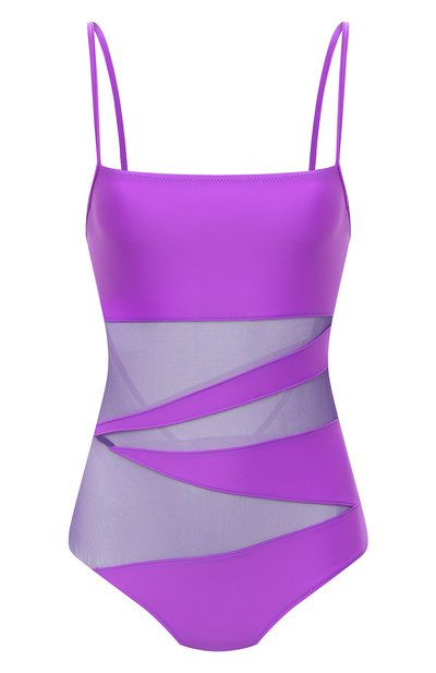Под жарким солнцем вещи чистых цветов приобретают особую яркость, и этот слитный купальник с открытой спиной – как раз из их числа. Фиолетовый оттенок эластичного полиамида кажется еще насыщеннее на фоне асимметричных полупрозрачных вставок из тонкой сетки.