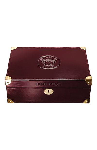 Чемодан цвета бургунди сделан из искусственной кожи. Кейс состоит из одного большого отсека и нескольких маленьких, в которые поместятся флаконы туши и помады. На внутренней стороне крышки расположили зеркало.