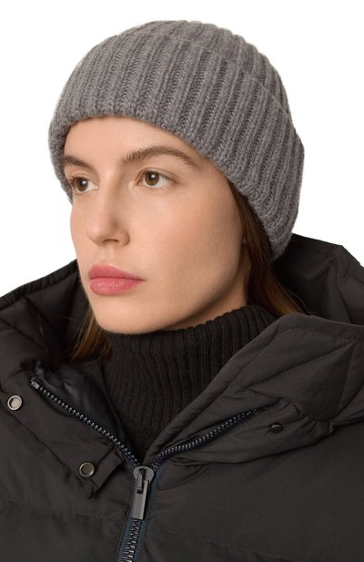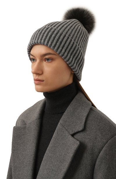 Темно-серая шапка связана из узких полос шелковистого меха норки Blackglama. Мягкая бархатистая подпушь и короткий остевой волос хорошо держат тепло, поддерживая комфортную для головы температуру. Выполненный вручную аксессуар может стать ключевым акцентом зимнего образа.