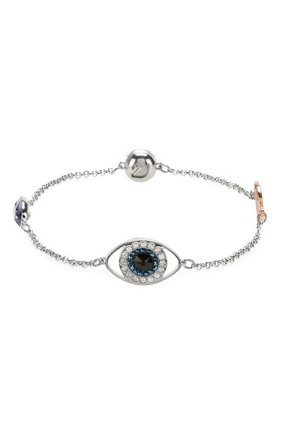 Тонкий браслет выполнен в виде серебристой цепочки, объединяющей четыре шарма с переливающимися кристаллами разного цвета, размера и огранки. Аксессуар застегивается невидимым магнитом, поэтому такое украшение можно комбинировать с другими изделиями из линии Remix. Модель эксклюзивно представлена в ЦУМе.