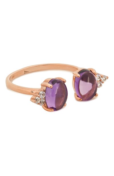 Кольцо с овальными кабошонами из аметиста и гранеными топазами выглядит почти невесомым: все дело в незамкнутой конструкции, позволяющей регулировать ширину аксессуара. При создании украшения мастера марки нанесли два слоя золота 999 пробы на основу из серебра, чтобы укрепить материал, который считается не очень прочным.
