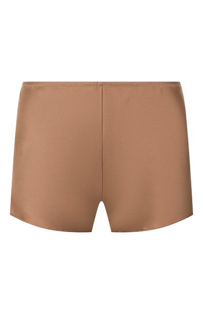 Шорты с плоскими краями выполнили из шелкового атласа. Модель с узким эластичным поясом подойдет и для сна, и для домашнего отдыха.