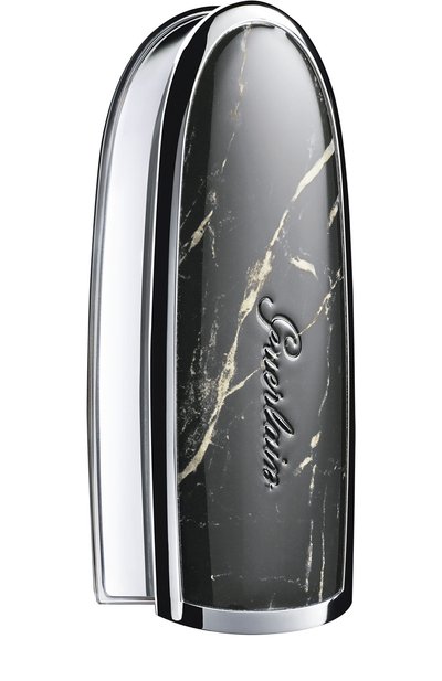 Черная глянцевая вставка со светлыми прожилками, как на мраморе, и гравировкой в виде логотипа бренда украшает один из 15 вариантов дизайна футляра для помады Rouge G. Для создания аксессуара, по форме напоминающего пулю, ювелир Лоренц Баумер выбрал гладкий серебристый металл. Внутри — два небольших зеркала.