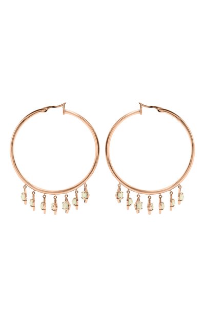 Крупные серьги-кольца из стерлингового серебра с покрытием цвета античного золота возьмут на себя всю нагрузку в образе, если сочетать их с лаконичными вещами. Миниатюрные подвески в форме звезд инкрустированы цирконами бриллиантовой огранки и светло-зелеными пренитами.