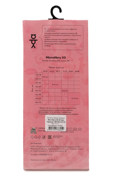 6/8А: рост 128-134 см, обхват груди 60-64 см; 8/10А: рост 134-146 см, обхват груди 64-72 см; 10/12А: рост 146-152 см, обхват груди 72-76 см; 12/14А: рост 152-164 см, обхват груди 80-88 см.